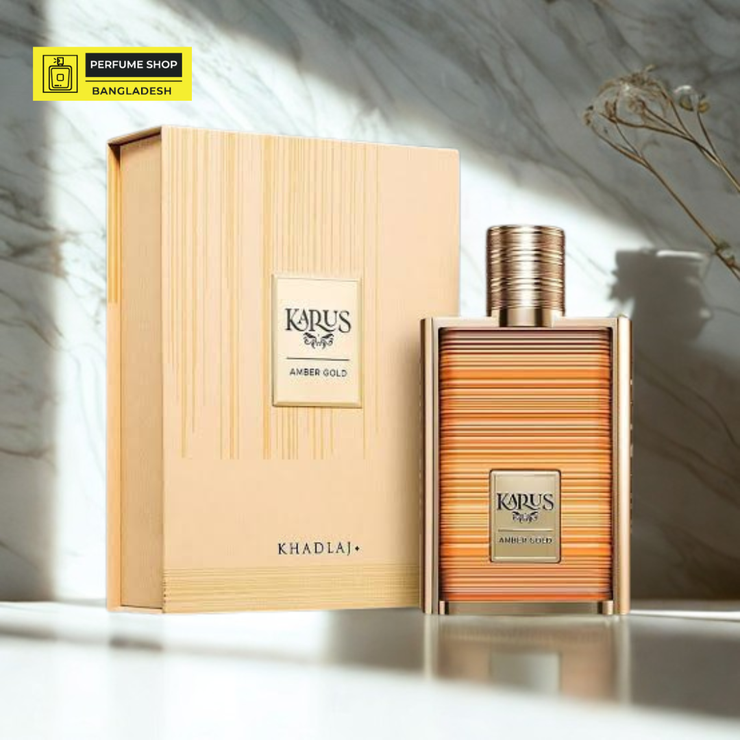Experience the opulence of Karus Amber Gold by Khadlaj. A luxurious unisex fragrance with notes of blackcurrant, rose, and oud. Perfect for any occasion.