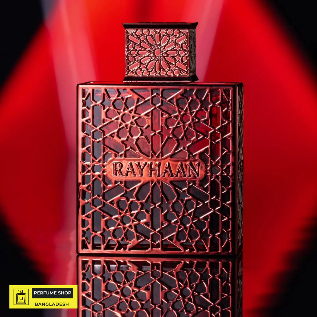 Rayhaan Crimson Eau de Parfum is your signature scent of confidence—masterfully blending bold spices with warm aromatic undertones. Featuring cinnamon, cardamom, and pink pepper at the top, a sensual heart of patchouli and heliotropin, and a rich, lasting embrace of vanilla, tonka bean, and benzoin.