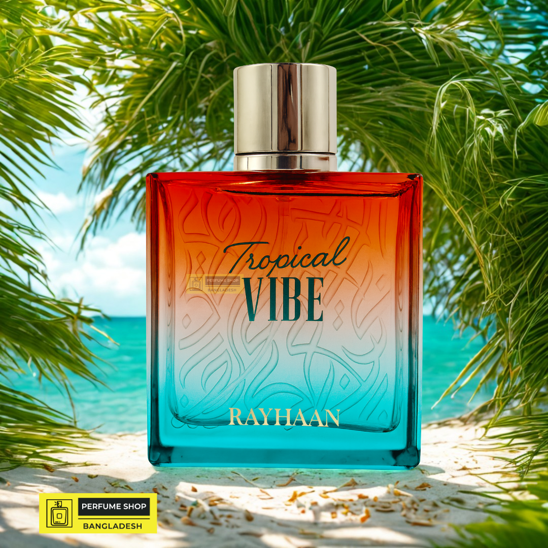 Rayhaan Tropical Vibe is a vibrant, captivating fragrance that captures the essence of a sun-soaked island getaway. This unisex scent is a harmonious blend of juicy, exotic fruits, fresh white florals, and a subtle marine accord, all anchored by a warm, sensual base. It’s a bright, playful, and modern fragrance designed for those who want to carry the spirit of summer with them year-round.